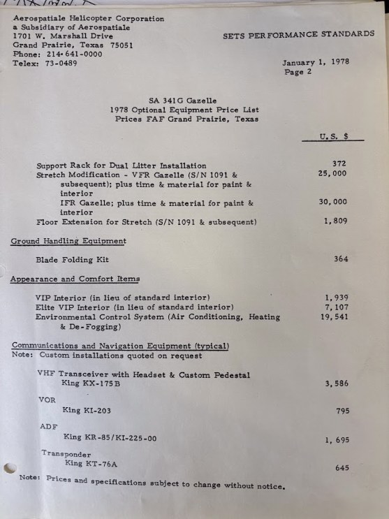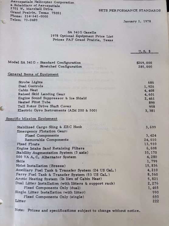 Or just spec your own Factory New SA 341G helicopter starting at only $269,000 - add the features you want!!